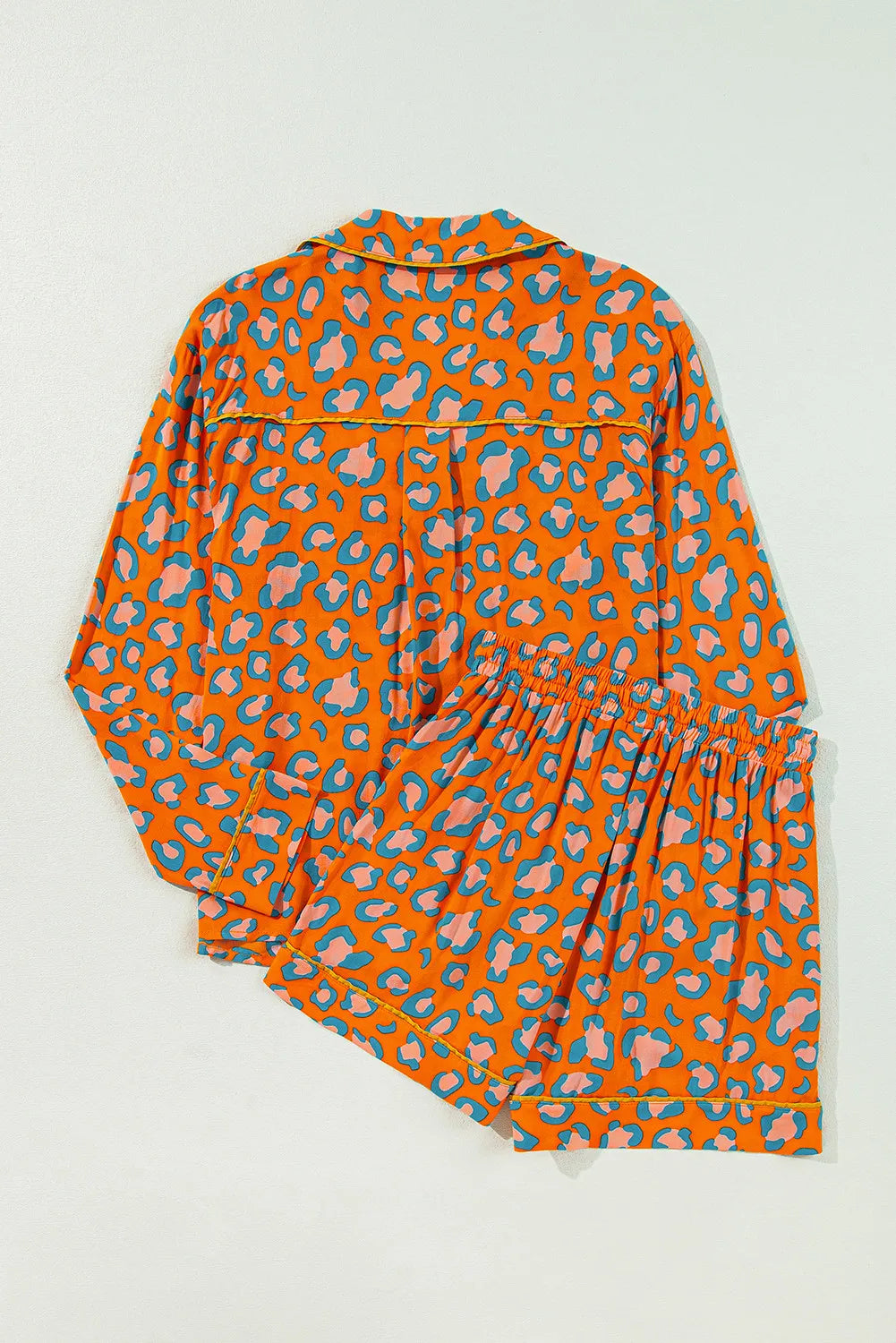 Leopard Collared Neck Long Sleeve Top and Shorts Lounge Set